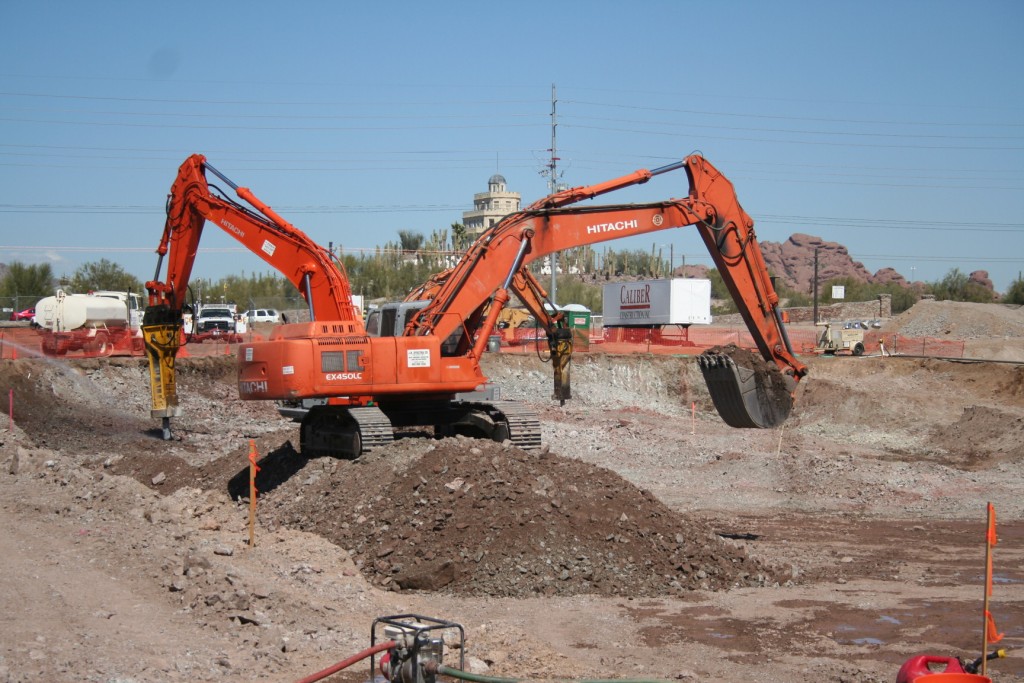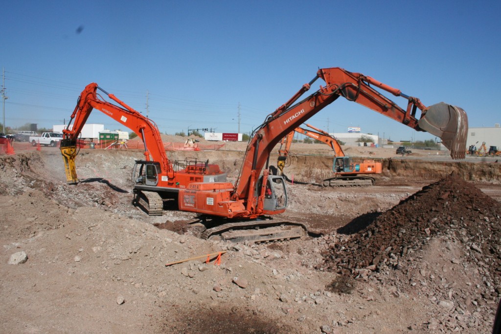 Pictured above: A sitework package including rock and boulder removal, excavating, grading and paving. Picture location: Cave Creek and Beardsley Road. |